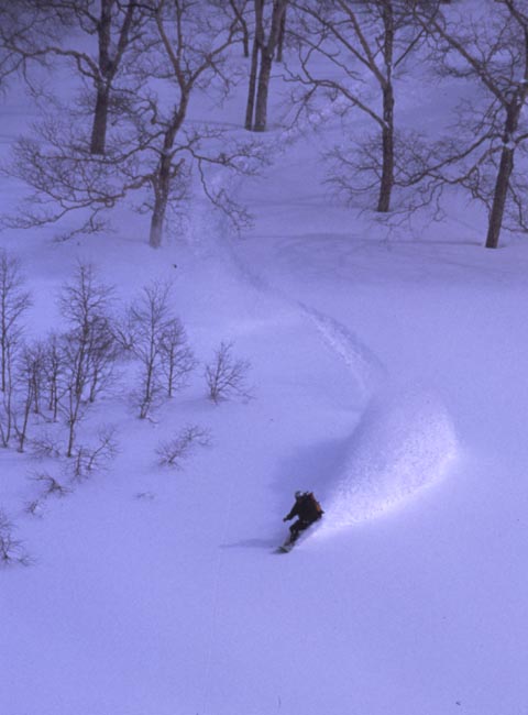 まずはダイレクトにアクセスできるエリアに突っ込んでみる。距離はないが斜度はありツリーだが地形も攻めがいのあるところが
