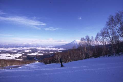 2月17日 先週とうってかわって軽い雪。これがニセコの雪でしょう。Bobby氏、fk氏、もとこちゃんと多くの友人が来道しているので、