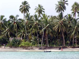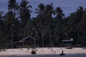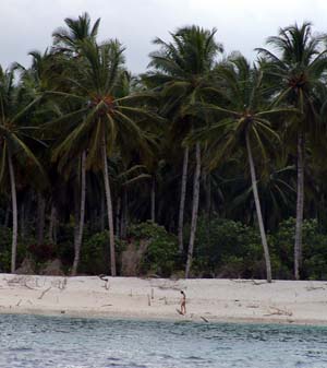 あまりに波がないのでcharlieは上陸して釣り。島の人たちが珍しそうな眼差しで見つめてきた。気をつけて歩かないとココナツ爆弾にやられてしまう。