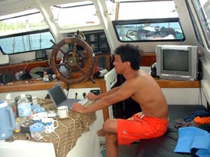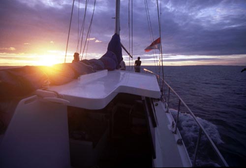 そして、海峡を横断するのだが、うねりと風で結構揺れる。charlieとjinjin以外は皆睡眠でこれをやりすごす。海峡の途中でドラグの快いサウンドが鳴り響いたが、ロス。なにかデカイ魚だったのではないだろうか・・・・不明のままである。個人的にはカジキの類だったのではないかと残念で仕方がない。