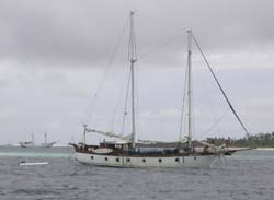 約3時間でゾーン2へ。しかし、相変わらずの雨風でテレスコープはグシャグシャ。この日は波乗りは諦めて、島影でステイすることとなった。夕刻、トッチーとcharlieはテンダーボートで釣りに出かけ、トッチーがトップウォーターで何かを出したのだがバラシ。残念であった。回復しない天気を恨めしく思いつつ就寝。