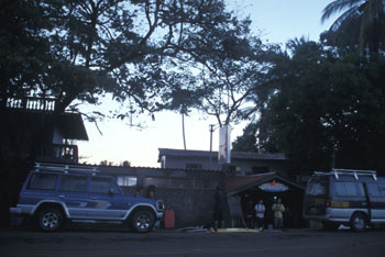 気を取り直して緑に覆われた山道をくねくねと運転すること2時間、ようやくJACOに到着した。早速、波をチェックするもオンショアぶよぶよセット頭で雨。気分はどよ〜〜んとしてくる。とりあえず、両替しようと銀行行くと休み、電話をかけようとすると今度はカード式で理解するのにえらい時間かかる。初めての国は一つ一つに凄く時間を要するんだなぁ。