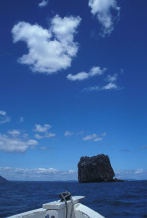 ボートに揺られて40分。憧れのWitch's Rockに到着だ。波は小さいがEndless Summer Uで見たあの岩が確かに存在していた。しかし、すでにボートが5隻、サーファー30人。あまり歓迎すべきコンディションとは言えない。