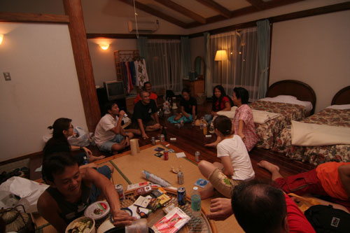 ビール10ダース、泡盛3升、それに北海道は深雪氏より頂いたドンペリをはじめ多種雑多な酒が用意され、飲み干す決意で夜は始まった。