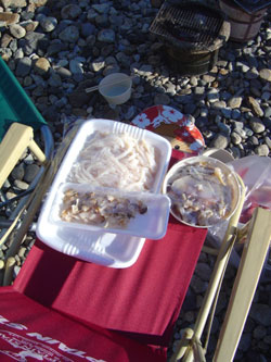大量の烏賊刺しとツブ刺し、Fさんがさばきました