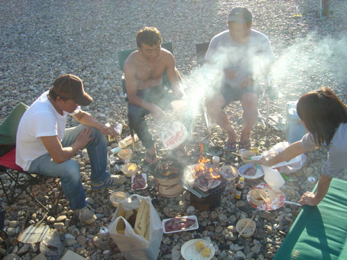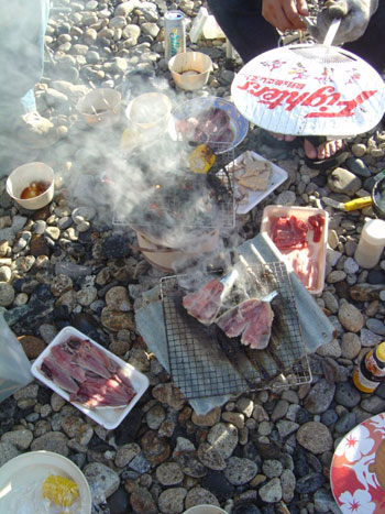 軽く波乗りして、午後早くからみんなで七輪バーベキュー。メインディッシュは秋サンマ、美味かった。
