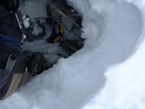 雪に大穴が開いてぼっこり落ちた。これくらいの深さで助かった・・・単独行動は怖いね。