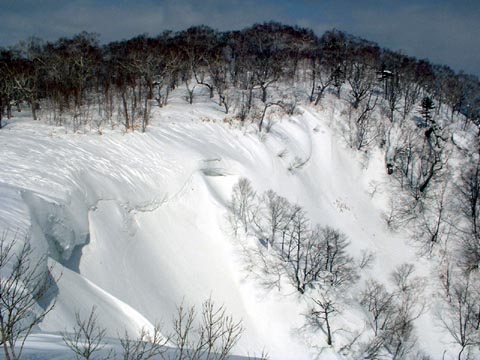 実は沢方面には気持ちよさげなツリーと斜度があったのだけど降りると登り返しがきつそうだったのでやめておいた。