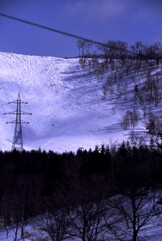 帰りは鉄塔沿いにオープンバーンがあるので良さそうなところを選んで一気に降りた。